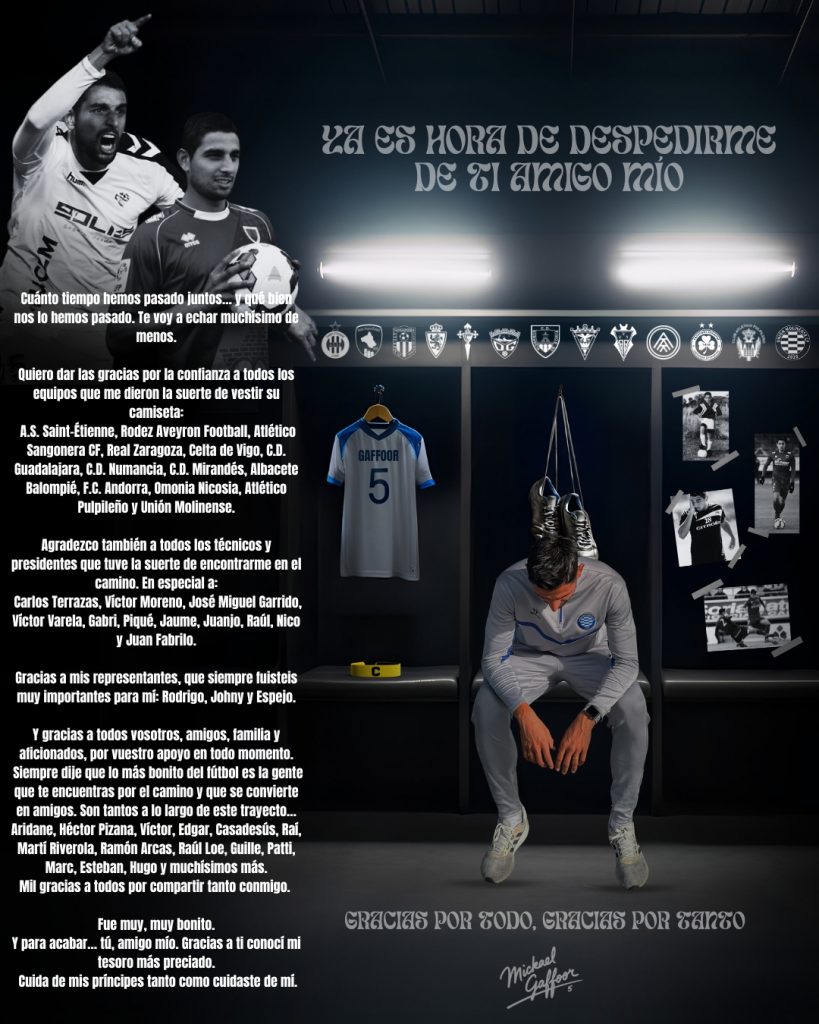El Unión Molinense Club de Fútbol comunica que Mickael Gaffoor pone fin a su etapa como futbolista profesional. Y lo hace vistiendo nuestra camiseta, defendiendo nuestro escudo y liderando nuestro vestuario como el capitán ejemplar que siempre ha sido.